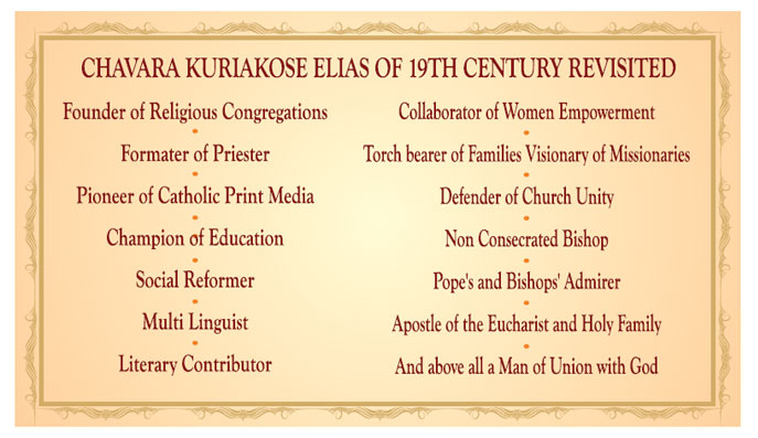 The testimonies on the life and activities of St Kuriakose Chavara came to the congregation for the cause of saints in Rome, from a variety of sources, from bishops, priests who were his masters and superiors, co-disciples, his own disciples, confreres in religion, public officials, noncatholic bishops, Hindus etc. All are unanimous in recognizing St Chavara “a man of eminent sanctity, who has practiced all the virtues.”